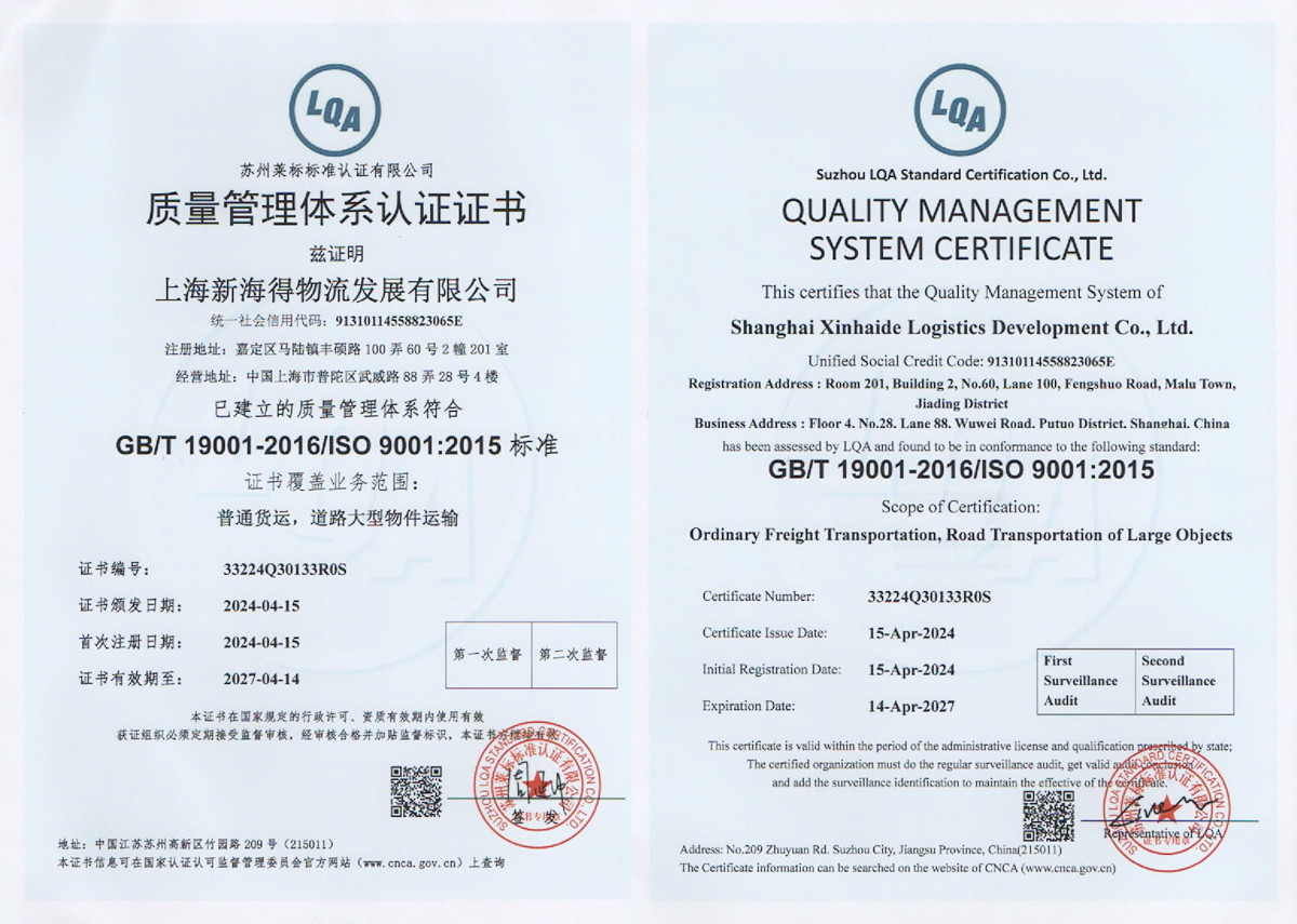 新海得物流嚴(yán)格按現(xiàn)代物流操作流程進(jìn)行標(biāo)準(zhǔn)化運(yùn)作。已通過國際質(zhì)量管理體系ISO9001:2015體系認(rèn)證。運(yùn)用健全的客戶服務(wù)管理系統(tǒng)、車輛管理系統(tǒng),財(cái)務(wù)管理系統(tǒng)。在查詢、監(jiān)控、追蹤、結(jié)算等方面與客戶做到無縫對接,打造了專業(yè)高效的客戶服務(wù)體系。